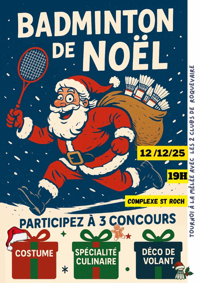 Venez partager un moment festif avant les vacances de fin d'année ! Le vendredi 12 décembre à 19h, les deux clubs se réunissent à Roquevaire pour un tournoi à la mêlée (les partenaires et les adversaires sont tirés au sort à chaque rotation ; matchs au temps).